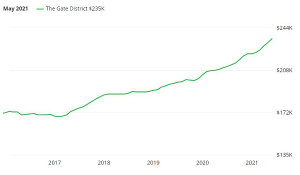 The Gate District home values have gone up 12.0% over the past year. Below is the five year graph for single family residences.